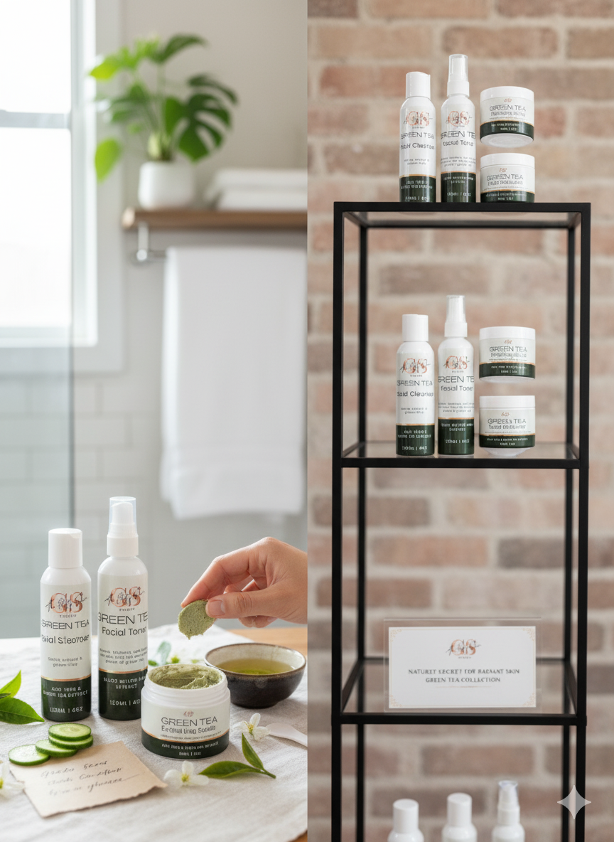 Experience the ultimate skin refresh with our Green Tea Glow Collection — a luxurious 4-step system designed to detoxify, soothe, and restore balance to your skin. Infused with antioxidant-rich Green Tea Extract, Aloe Vera, and Vitamin E, each product works in harmony to nourish your skin while maintaining its natural glow.